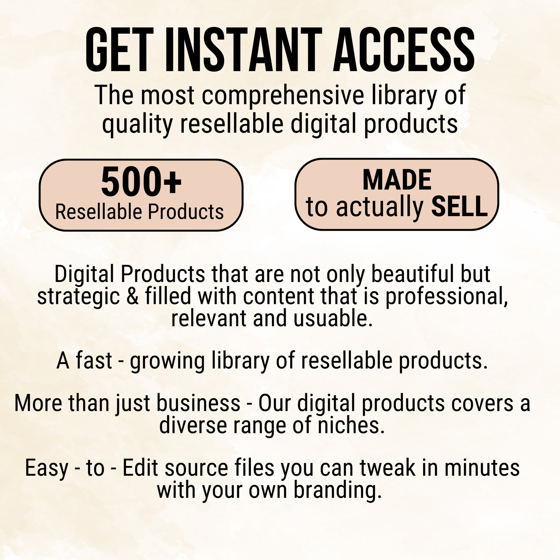 🚀 Whether you want to boost your income, grow your brand, or offer more value to your audience, this done-for-you library gives you everything you need to start selling digital products immediately — and even resell the library itself for long-term recurring profits.