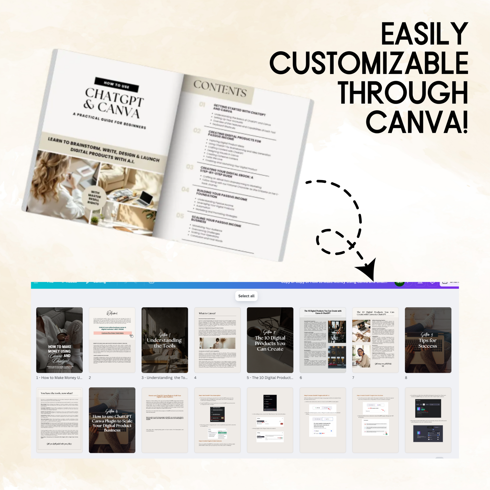 Complete ChatGPT + Canva Digital Product Creation eBook | Editable PLR/MRR Template (87 Pages + Extras)